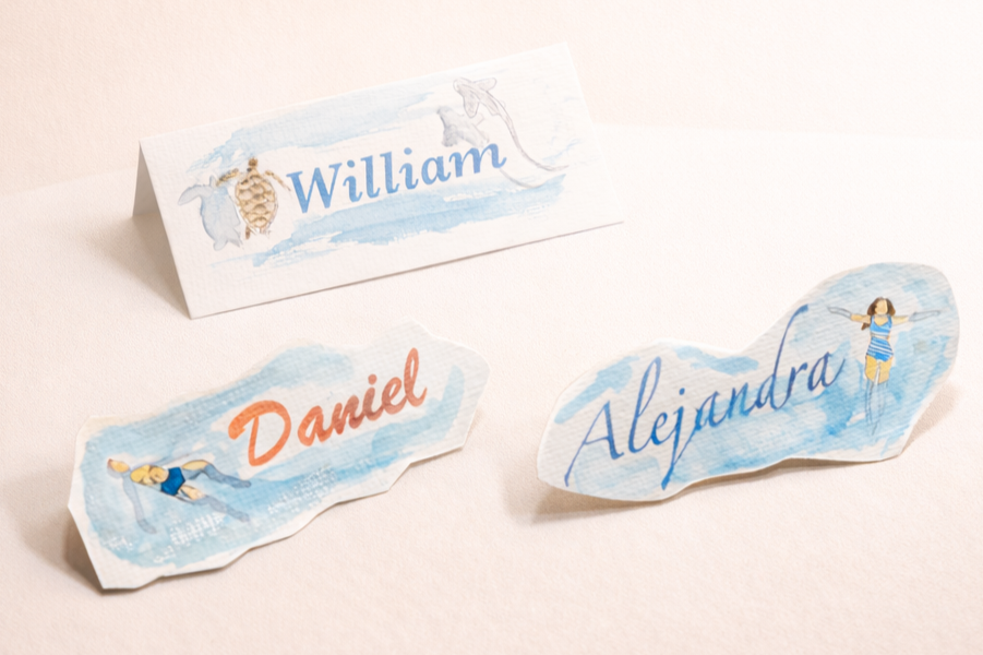 Handgemalte Platzkarten für eure Hochzeit auf Mallorca