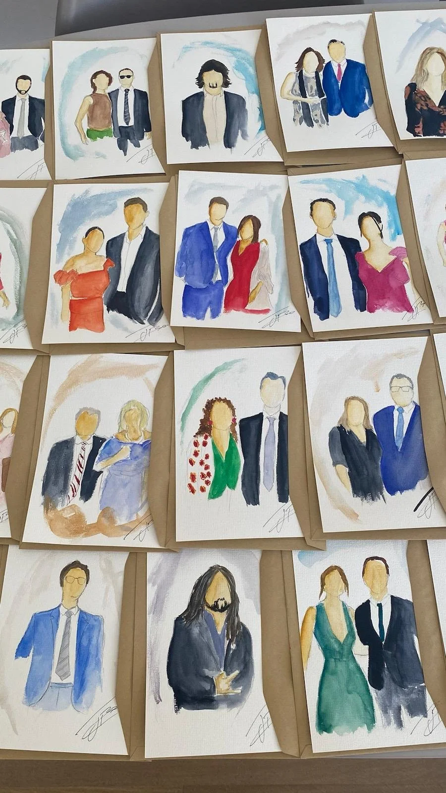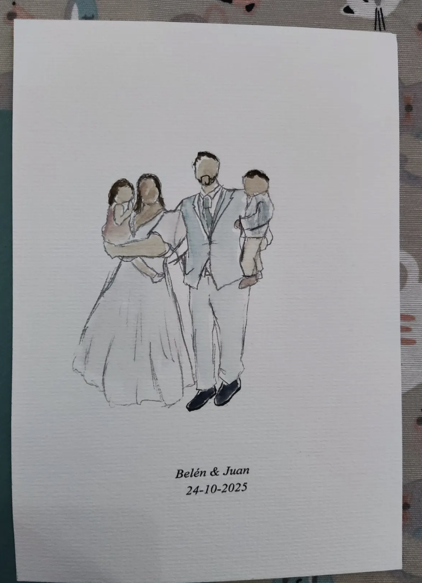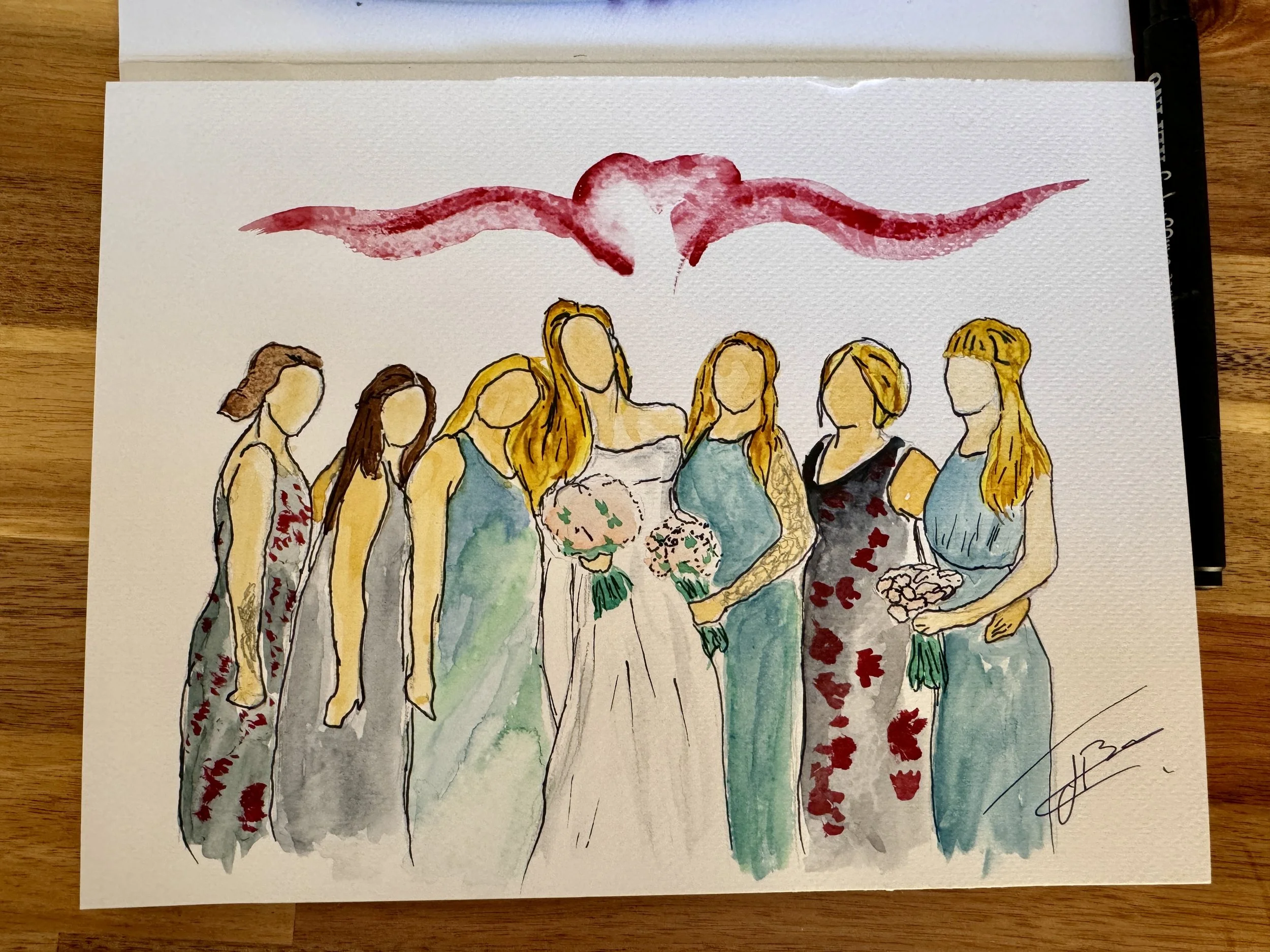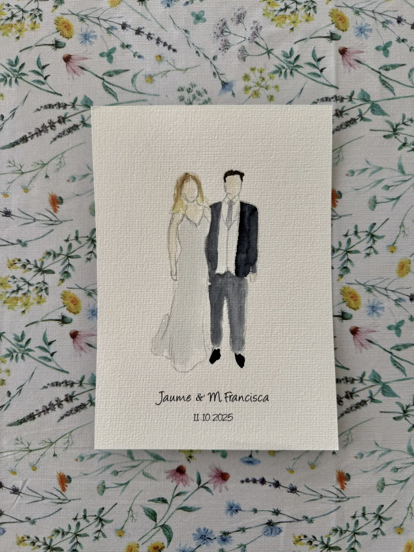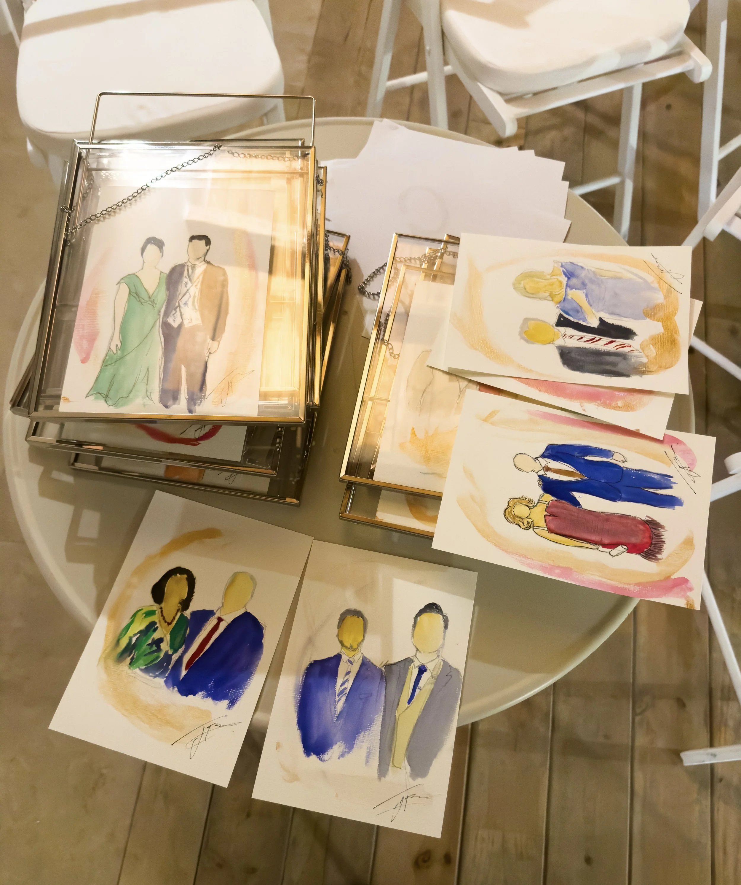 Retratos elegantes en acuarela pintados en vivo durante tu boda.